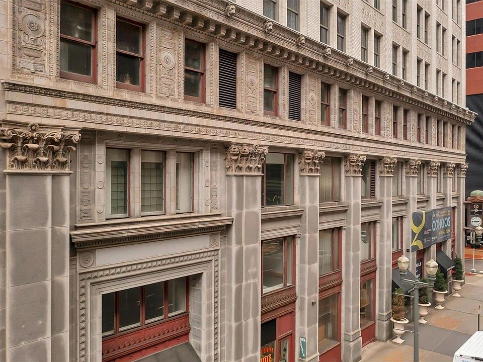 The Marquette Building, aka Boatmen's Bank Building, is a historic 19-story mixed-use building added to the National Register of Historic Place and located in the Central Business District of St. Louis, within walking distance of major attractions such as the Gateway Arch, the Old Cathedral, Busch Stadium, Ballpark Village, and America's Center. Close to Saint Louis University Law School, Kiel Center, Union Station, and Energizer Park. Amenities include front desk security, a gated, connected, and covered garage, a rooftop pool, sundeck, dog park, community kitchen, and a Carrara marble lobby.