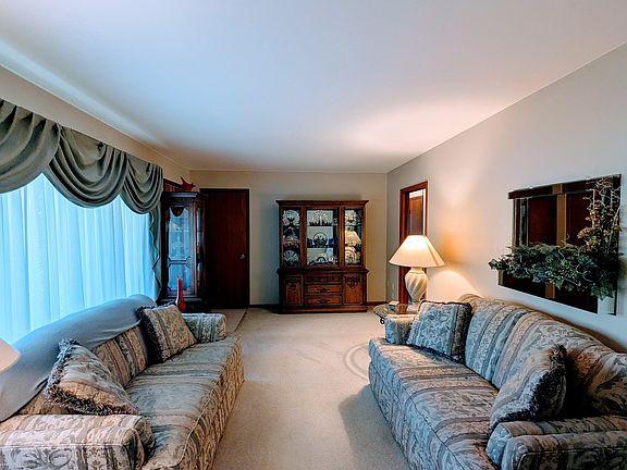 Super well maintained, immaculate ranch home. Efficient layout and design. Large living room with electric fireplace. Large eat-in kitchen. Front entry coat closet. Completely finished basement with gas fireplace, kitchen area, dining area, living area, bar area w mini frig., extra storage closet, cedar closet, work and tool room, utility closet. House backs to Whistle Stop Park. so no home behind this home, just open space! Detached garage and shed give lots of outdoor storage space.