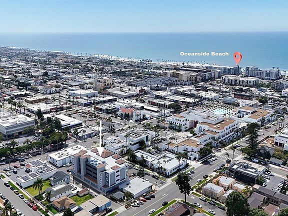 Back on Market! No fault of the property. The buyer couldn't perform. RARE FIND! FULLY FURNISHED except for the office. Located west of I-5 in the heart of the cultural district of Oceanside & across from the museum of art & the civic center. Just a few blocks to the beach & Oceanside Harbor. Single level living area with a peek ocean view! This property is upgraded 3 bedroom, 2 bathroom with a west facing balcony. This unique building includes a three-car garage PLUS a first-floor office/den/hobby or storage room for each unit!!! The building amenities include a gym, recreation room, & roof top deck (remodeled with gorgeous barbeque, fire pit & more) with 180-degree ocean view. Walk score is 95, or in other words a walker’s paradise! Walk to Oceanside's beautiful Harbor& beaches, fishing pier, new resorts, restaurants, houses of worship, grocery stores, train station, and more! Nothing compares to the upgrades and extras this building has to offer! WELCOME HOME! Note: Office photos & fire in the fireplace are virtually staged.