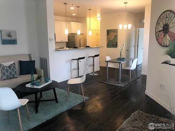 Perfect end-unit ranch-style condo in immaculate condition with over $20K+ in upgrades! Beautiful hardwood floors throughout, soft close drawers and cabinetry, granite counters throughout, window coverings, stainless steel appliances, central air, gas fireplace, walk in closets, enclosed patio and more! Green construction + Energy Star certified. Walking distance to parks, rec center and museum. Easy commute to both Prospect New Town and Downtown Longmont.