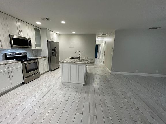 discover this beautifully remodeled 3-bedroom, 2-bathroom home, perfect for modern living. The property features a spacious open floor plan with updated finishes throughout, including a sleek kitchen with S/S appliances and stylish countertops. Each bedroom offers ample space and comfort, while the bathrooms boast contemporary fixtures. hurricane impact windows and 2 sheds for storage.