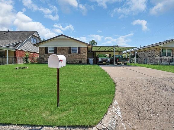 This home features a two-car carport and a desirable split floor plan with hard surface flooring throughout. The spacious living room offers convenient access to the kitchen, which includes tile flooring, ample cabinet space, and essential appliances. The primary bedroom is generously sized and includes an en-suite bathroom with a shower/tub combo. Three additional bedrooms and share a full bathroom with a shower/tub combo.