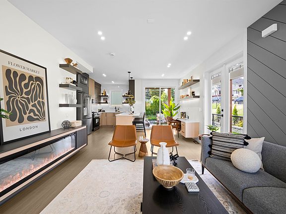 Modern 3-level home with thoughtful design and stunning mountain views. The main floor features an open-concept great room, dining area, kitchen with gas stove, powder room, and covered patio with a BBQ outlet. Upstairs offers a spacious primary bedroom with ensuite, two additional bedrooms, a full bathroom, and laundry. The lower level includes a versatile rec room/guest suite with full bath and crawl space storage. Enjoy an EV charger, A/C, built-in music system, security camera system, Garden hose connection on side and rear of property, built-in shelves throughout all rooms, and 2 parking spots plus street parking.