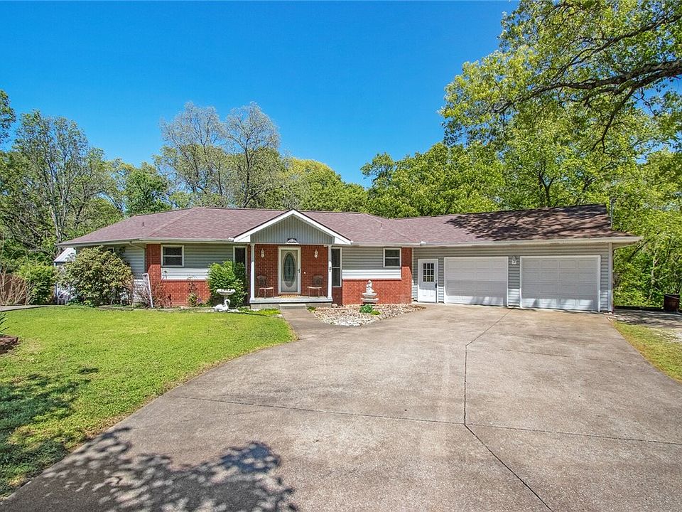 House. Land. Shop. It is a tough combination to find at this price point in NWA but this listing has all three. This 2 bedroom/2.5 bath home sits on 1.64 acres along with a 28x32 shop building. Right when you walk into the home you feel at home with the skylights bringing light into the living room. This open concept boasts plenty of room for hosting with the kitchen, dining, and living room all in the same area. Each bedroom has it's own on suite bathroom and then there is a half bath in the hall. Don't mess the oversized garage with additional cabinetry. Stepping through the sunroom and onto one of the three decks, you really get a feel for the quiet serene nature. This is not your everyday listing. This one is special. Go check it out today.