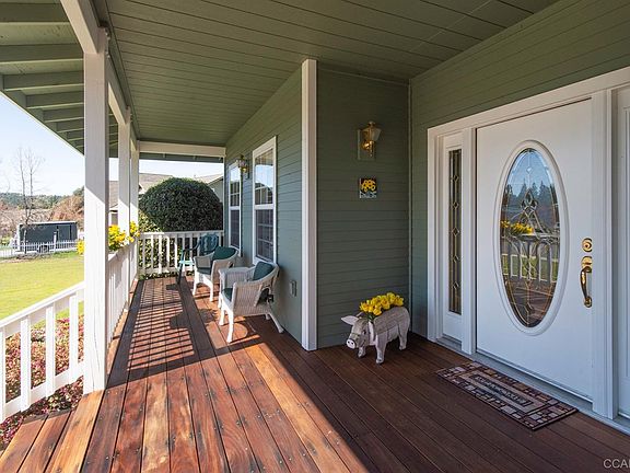 PRIME LOCATION! Stunning single-level home in highly desirable and picturesque area of Murphys. Great curb appeal. Only a few blocks to downtown Murphys with its many restaurants, shops and wine tasting. Spacious fenced and landscaped backyard with concrete patio backs to undeveloped Rocky Hill area. Enter into the open living room with gas log fireplace and vaulted ceiling extending into the huge kitchen with granite countertops, gas range, convection oven and breakfast bar, all with the same wonderful hills view. Master bedroom with walk-in closet opens to the backyard. Office could be used as a 4th bedroom or formal dining room. Large laundry room opens into two-car garage with abundant storage. Enjoy your morning coffee on the covered front porch and watch the world go by while listening to the cacophony of birds chirping. This picture-perfect home offers 1933 square feet, 3 bedrooms, 3 baths, office, hardwood flooring, central heat and air. This home has been loved and meticulously maintained and awaits its new owner.