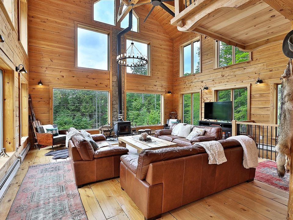 Wood stovePanoramic forest viewsTimber frame retreatBonus loft spaceExercise areaComplete privacyGame room