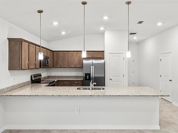 ***NEW CONSTRUCTION, NO WAIT, MOVE IN READY!*** Elevate your lifestyle with the opulence of the Sanibel I floorplan presented by Carpenter Homes—a masterpiece within the Florida Living Series, certified by the Florida Green Building Coalition (FGBC). This home features 4 bedrooms and 2 full bathrooms. This dream home is designed and built to immerse you in luxury. As you enter, a beautiful kitchen welcomes you, with an expansive, oversized bar that seamlessly flows into the living and dining area. The finesse of soft-close, Shaker Stained 30" cabinets and upgraded Beta White granite countertops add a functional touch of luxury to the kitchen. Kitchen upgrades include a Moen Method chrome kitchen faucet, garbage disposal, and sleek stainless steel energy efficient appliances. This home exudes sophistication with a vaulted ceiling that unveils a spacious lanai, creating an indoor-outdoor haven. Additionally, Carpenter Homes provides an upgraded lighting package including Kemal Bronze pendants over the kitchen bar, and Oslo brushed nickel vanity fixtures in both bathrooms, accenting the overall lighting design. Brushed nickel finished ceiling fans in each bedroom, as well as the great room, helps to circulate air flow and keep you cool in the Florida weather. Complimenting the expansive living area is Magnisi 18” ceramic tile flooring. The Owner's suite is a sanctuary of indulgence, showcasing dual sinks, impeccably tiled Magnisi 8x12” white walls in the shower, and a generously sized walk-in closet! The home boasts Magnisi 8x12” white upgraded tiled walls in in the second bath/shower, a Beta White granite vanity top, and Moen Chateau chrome faucets and shower/tub trim kits. The ampleness of this home continues with a utility room, and additions such as energy-efficient R-4.1 insulation on concrete exterior walls, Taexx tubes for pest control, and fabric hurricane shutters for every window. The Florida friendly landscaped yard is complemented by an irrigation system with a rain sensor to help maximize efficiency. The expansive 2-car garage, complete with garage door opener and two remotes, not only provides ample space for your everyday needs but also ensures the utmost convenience and versatility for all your storage and parking requirements! Step into a world where extravagance meets eco-conscious living—your forever home awaits, a testament to timeless elegance and modern sustainability! Available to view now!
