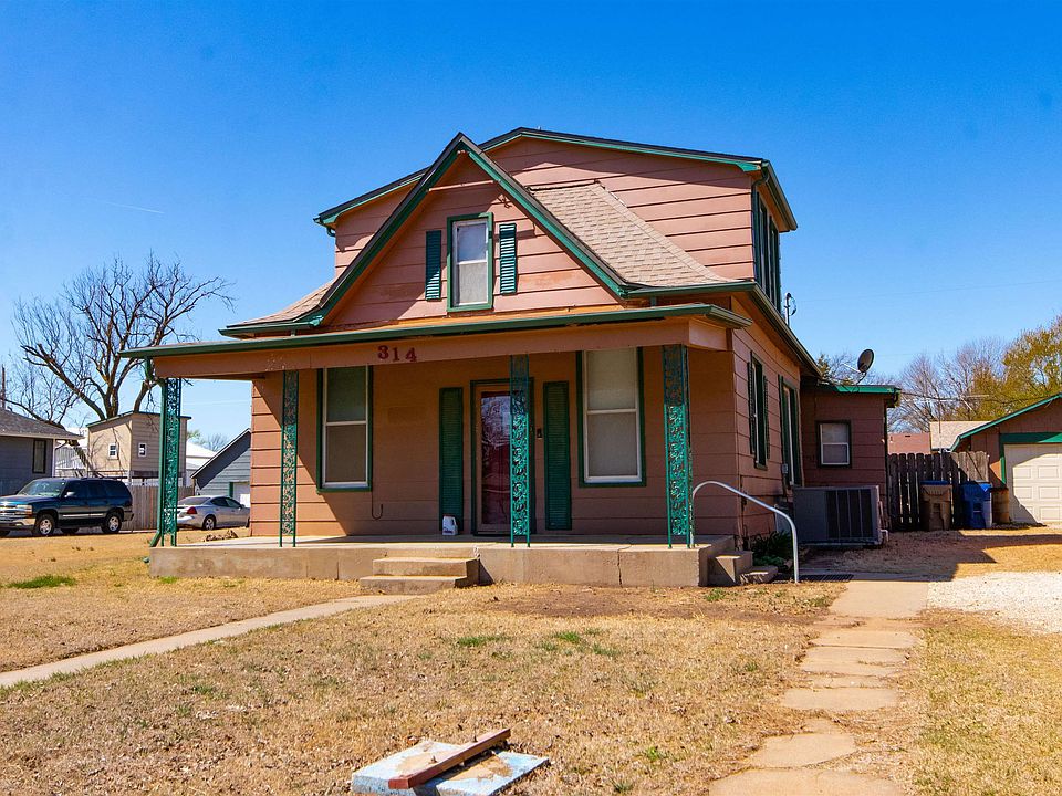Charming 1.5 Story Victorian sold AS-IS in Conway Springs! Take the opportunity to convert this 1,688 sq ft single family home with 2 beds and 2 baths into a modern starter home or investment property. The home features an elongated covered front porch, a spacious screened-in back patio, a loft area with its own closet and bath, as well as 2 detached 1-car garages with back alley access. This 1885 build has so much personality with its 9.5 foot tall ceilings, allowing the space to feel so open, huge windows allowing tons of natural lighting to flow through the space, and a private backyard with a storage shed. Upon entering, you will feel welcomed into the large open living area, located directly beside two bedrooms. The master bedroom has its own en suite bath that has been recently remodeled with a new shower unit. The kitchen provides a ton of cabinet and counter space with all appliances staying with the home. There’s plenty of room to add an island if desired! A formal dining room off of the kitchen allows the perfect space for gatherings with friends and family. The laundry room is conveniently located near the kitchen as well. You’ll also get to enjoy your evenings and the beautiful weather in the impressive screened-in patio out back with all your guests. Entering the upper level of the home, you’ll be shocked to see all of the extra space and potential you have within the loft. This area could be used as another sleeping quarters, recreational space or anything you need! With a closet and its own bathroom, the possibilities are endless. The 2 detached garages are perfect for parking and/or any storage needs you may have. Some other recent updates include new roofing and guttering in 2019! Live very close to schools, parks, and the community sports complex. Don’t miss out on this charming listing. Call today to schedule a private showing!