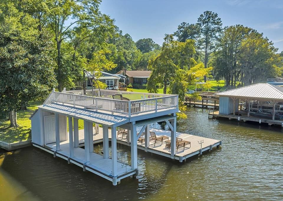 Lake blackshear sunset viewsOwn boat rampHuge double decker dockLarge lotMetal pole barn carportLarge screened porchSide cook porch