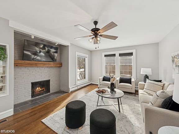 Discover the charm of this Cape Cod home at 314 South Hi Lusi Avenue in Mount Prospect. Prime location just blocks from downtown and the Metra station! With 3 bedrooms (1 on main level), 2 bathrooms, and 1,493 square feet of living space, this home offers comfort and style. Enjoy the cozy fireplace, hardwood floors, and a kitchen equipped with stainless steel appliances, including a dishwasher and microwave. Relax on the private deck or screened in porch, and take advantage of the full basement for extra space. The home features central and window AC, ceiling fans, and built-ins for added convenience. Outside, you'll find a screened in porch, 2 car garage, and driveway on a spacious 7,801 square foot lot. Don't miss out on this delightful Cape Cod gem!