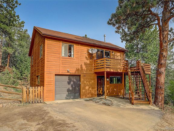 Lovingly, Cared Home, Stunning Upgrades & Breathe Taking Views! Sunny and open floor plan with floor to ceiling windows that look out at stunning Lone Rock and the surrounding majestic mountains. Over $50k in newer upgrades which includes outside house painting, a fenced backyard with two gates, beautiful tile floors that look like hardwood flooring on the upper and lower levels (easy to clean, no scratched floors from dogs), newer 2-stage forced air furnace, new 40 gallon hot water heater, new storm doors, updated bathrooms with gorgeous finishes which include travertine, walnut counter-top, hand hammered copper sink, new shower, leather finished granite counter-top upper level. Other features include new stunning Onyx light fixtures, new natural gas stove/fireplace in the Great Room to warm up cold winter nights or to enjoy a delicious meal with a warm, cozy ambiance. Three bedrooms (upper level w a walk-in closet), 2 bathrooms (one full and one 3/4), vaulted ceilings, family/rec room (lower level), large wrap around deck, 1-car attached garage, attached storage area with electricity, mixture of trees, close to Hwy 285 access & hiking trails, quick possession. Seller uses Rise Broadband/Internet, Colorado Natural Gas, IREA (electric), Direct TV, Mountain View Trash. Hurry, it is a good one!