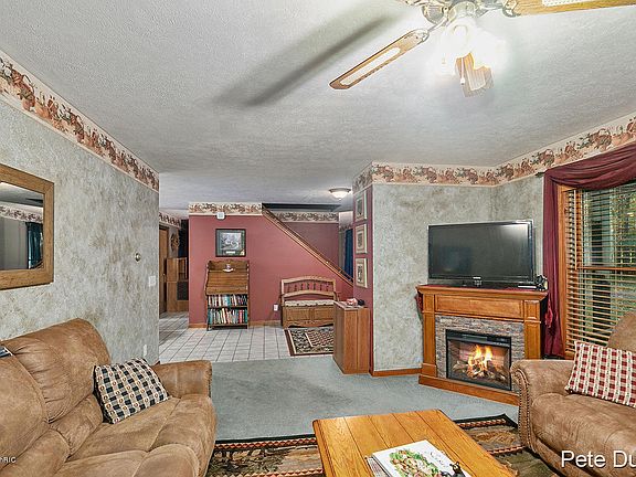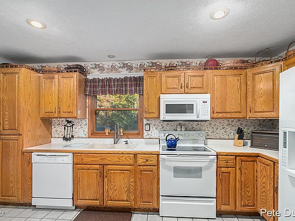 Beautiful home nestled in the woods! This home sits way back from the road in a quiet setting surrounded by wildlife. Enjoy quiet country evenings on your back deck. Some of the best hunting in the area according to the seller. The wood stove in the dining room keeps the whole house heated. All appliances are included, even the washer and dryer. There are four bedrooms upstairs and an office/den on the main floor which could be converted to a bedroom. Full basement ready to be finished into bedrooms or family room. currently used as a rec room.