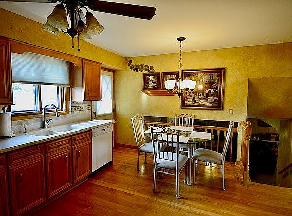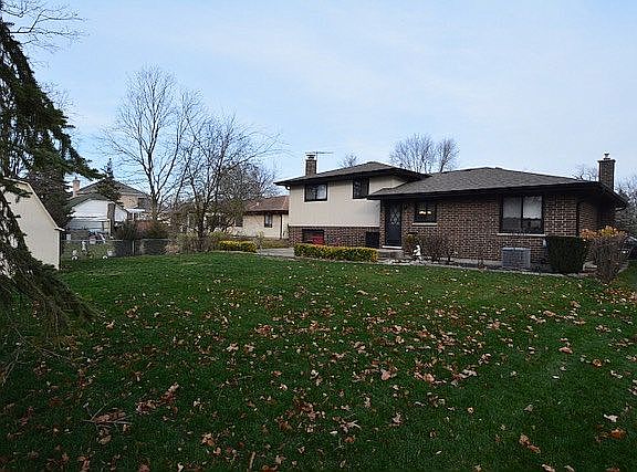 Don't miss this gorgeous split-level with hardwood floors throughout the kitchen, stairs, and second level hallway with over 3000 square feet. Finished sub-basement with an office/work space. Recent kitchen remodel with all new cabinetry, corian countertops, and high end appliances. Living room features newer bay windows. Gas fireplace and built-in shelving in the large family room. Newer front door and storm door. Master bath with an additional full shared bath upstairs. Outdoor patio space perfect for entertaining! Roof replaced in 2017, Water Heater 2013, Furnace and A/C 2012. 1 block away from the elementary school and parks. This home has been well cared for top to bottom, just put your finishing touches on it and move in!