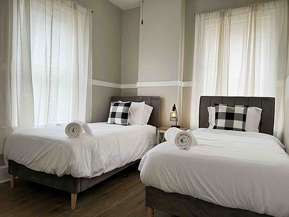 Enjoy this centrally located two-bedroom, one-bath apartment just steps from Main Street and the Ohio Riverfront. This first-floor apartment offers a welcoming atmosphere where you can truly feel at home. The apartment is sparkling clean and features a 55" smart TV for entertainment, fast Wi-Fi, and a stocked kitchen for easy meal preparation. Premium bedding ensures a restful sleep, and guests have access to the entire apartment. Free street parking is available, and a washer and dryer can be provided upon request. The unit retains its original clawfoot bathtub, adding a touch of vintage charm to the modern amenities.
