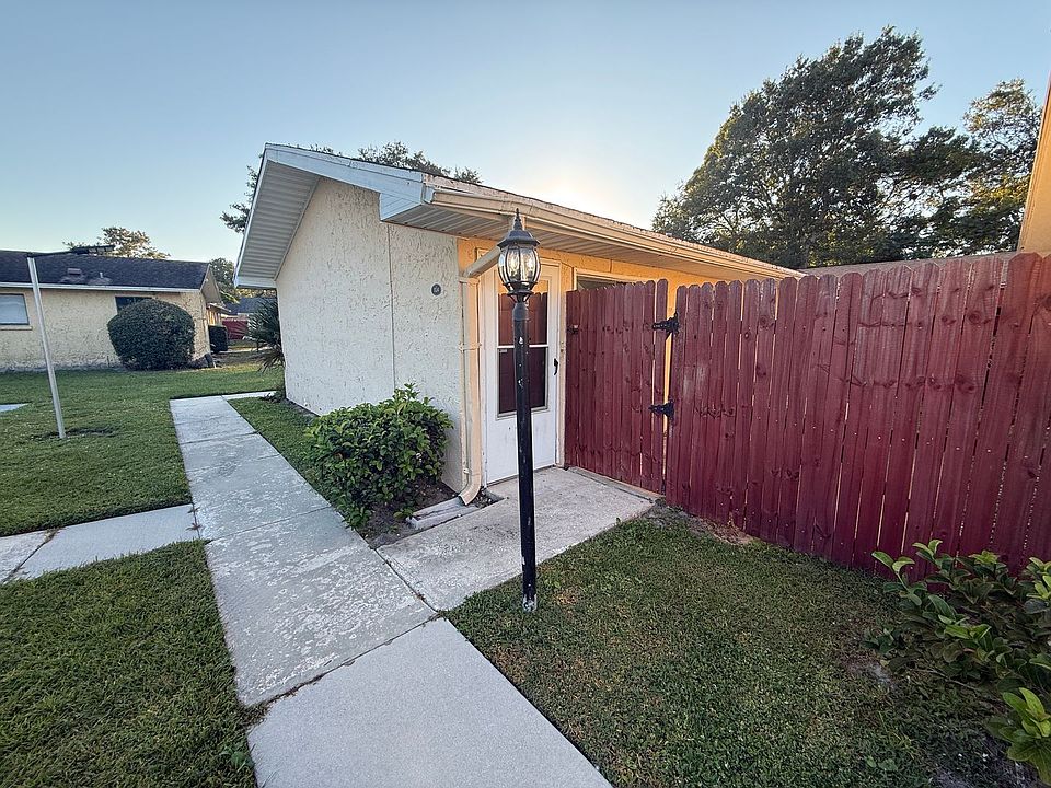 AVAILABLE NOW! Adorable 1 bedroom, 1 bath villa with fenced area, open patio, shed, all tile flooring, washer and dryer included. Living room/dining area combined, all appliances except microwave. Enjoy the pool and tennis courts too!