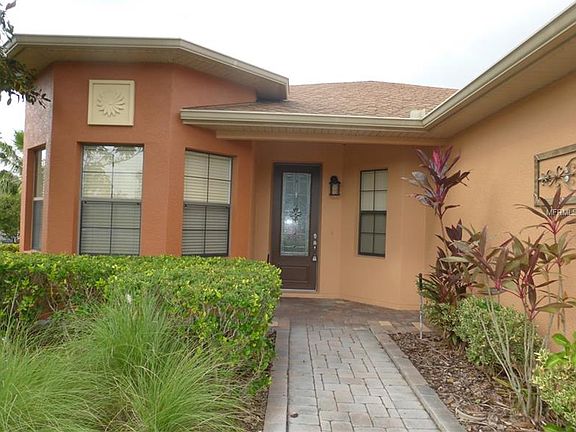 Sarasota Model Located On A Large Corner Lot And Close To The Palms Recreation Area. Lush Plantings Surround The Property. Enter The Home Thru A Leaded Glass Door To The THREE Bedroom Split Floor Plan. The Kitchen, Laundry And Baths Have Upgraded 18" Tile Set On The Diagonal. There Is A Separate Eat-In Area With Bay Window In The Kitchen Which Has Been Upgraded With GRANITE COUNTERS AND STAINLESS STEEL APPLIANCES. It Also Features 42" Maple Upgraded Cabinets With Crown Molding And Overlooks The Dining Area And Breakfast Counter. Lanai Is Screened. Laundry Is Complete With Washer And Dryer. The Two Car Garage Has Epoxy Flooring. Furniture Is Negotiable Outside Of Contract. Solivita Is An Award Winning Community For Active Adults, Located Approximately 20 Miles From Walt Disney World Resort. Comprised Of Slightly More Than 4000 Acres, Nearly 2/3 Will Remain Wetlands, Lakes And Pristine Woodlands. Walking Paths And Nature Trails Connect Residential And Recreational Areas. There Are Numerous Neighborhood Pools, Two State Of The Art Fitness Centers, Outdoor Athletic Fields, Classes And Clubs To Enjoy The Lifestyle You Deserve.