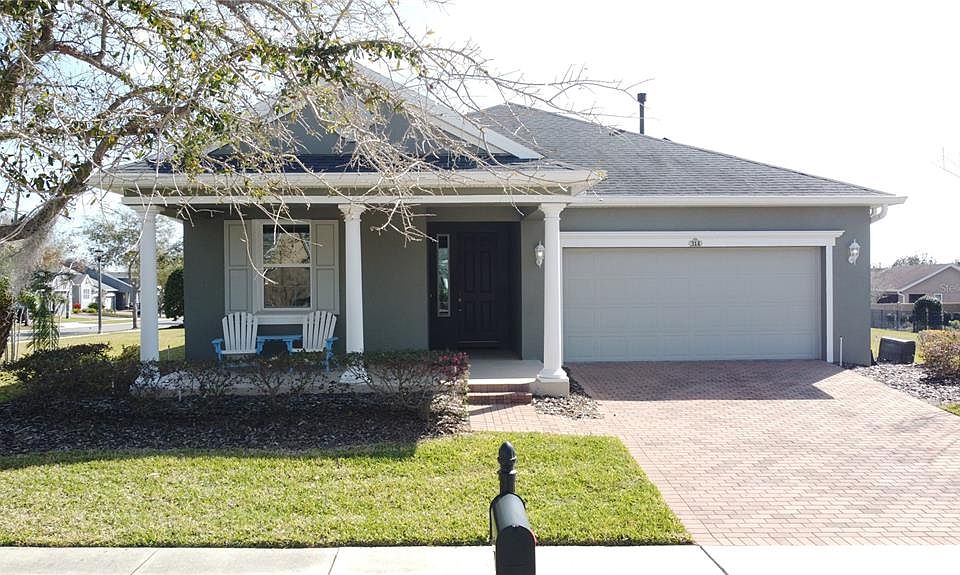 Welcome to 314 Silver Maple Rd. This beautifully maintained Larkspur model is situated on a spacious corner lot in the Cascades of Groveland (Trilogy) subdivision. Sit on the front porch and watch the sunsets with your friends and neighbors or watch the sun rise from your covered wrap around screen enclosure, this home provides plenty of outdoor space in which to enjoy our beautiful central Florida climate. The open floorplan is great for entertaining. The solid wood cabinets and breakfast bar open up to your great room and extremely large dining room. French doors into the den provide the privacy you need if you should want to convert it to a sleeping area for guests. The 2nd bedroom is very spacious and can easily accomodate a queen sized bed. High ceilings and neutral colors make this home feel open and bright. The oversized laundry room features a wall of storage cabinets and a large pantry closet. The house also boasts of a full solar package which saves countless dollars on the electric bill. Ceramic tile runs throughout the main living area and carpet is in both bedrooms. The Owner's bathroom features double vanities, an oversized stall shower and a large walk in closet.Trilogy is a 55+ community and offers a 57,000 Sq. Ft. resort style clubhouse with both an indoor and outdoor pool, hot tubs, fitness center, tennis, pickleball, billiards, a demo kitchen, art studio, card rooms and restaurant on premises and more.