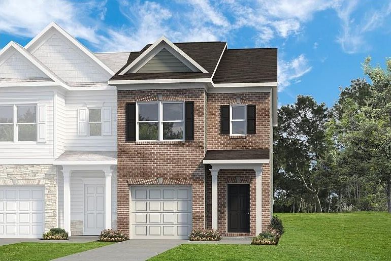 Move in Ready May 2025! The Pierce plan in Highland Crossing by Smith Douglas Homes. This end unit offers an easy-maintenance lifestyle giving you more time to do the things you enjoy! From the welcoming covered front entry to the spacious fireside family room with a sleek linear fireplace, every detail is designed for both comfort and style. The chef-inspired kitchen features a walk-in pantry, upgraded Vinyl plank flooring, granite counters and stainless steel appliances. Step outside to the rear patio perfect for relaxing and entertaining. An open iron rail staircase leads to the upstairs where you'll find a convenient laundry room and three bedrooms, including a spacious Owner's suite with a walk-in closet. With 9ft ceiling heights on both levels, this home feels open and inviting. Photos are representative of plan not of actual home being built. Seller incentives with use of preferred lender.