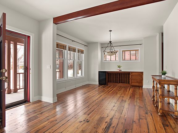 - Exterior features: Heating system: Forced Air, Large Open Space Beyond Backyard, Lots of space for family gatherings, Mature and Lush landscaping, New furnishings and accessories, New interior and exterior paint, Reclaimed Heart Pine Flooring, Unique Large Backyard, Walk In Closet