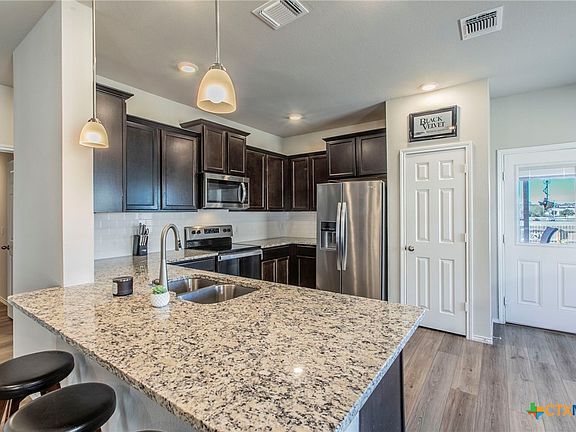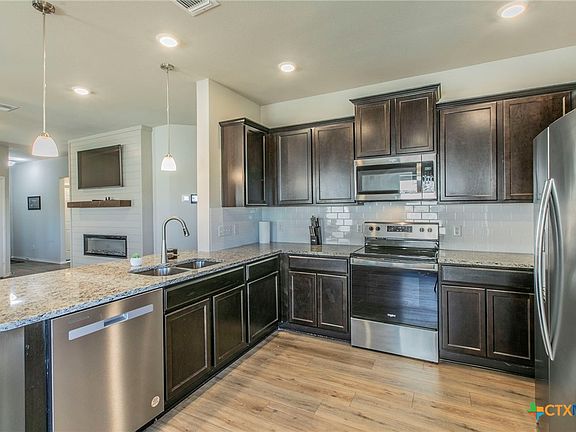 Gently lived in 3 bedroom, split arrangement, 2 full bath brick home, with open living, dining and kitchen floorplan. Over 1700 sq. ft living area in this beautifully maintained brick home in popular Belton ISD neighborhood. Upgrades throughout to include built-in electric fireplace, which is the vocal point of the large open family room with Lots of natural light and neutral colors. Abundance of granite counter tops, cabinets with extra storage, all the built-in appliances to include the refrigerator, all gently used. Large utility/laundry room with washer/dryer. Private master suite at back of house, master bath offers walk in shower, dual sinks and large walk in closet. The backyard is private with open backfield, so no back neighbors, covered back patio to enjoy the peaceful quiet setting, Recently completed 12X16 storage bldg. You won't be dissappointed.