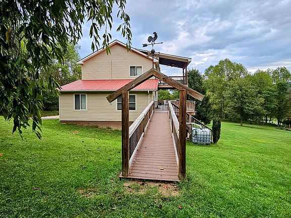 Experience Serene Living on 5 Acres with River Access, Skyline Drive Views, and Abundant Natural Light Nestled within a lush, park-like setting, this home offers the perfect blend of comfort and tranquility. With four generously-sized bedrooms, two full bathrooms, and two half baths, this residence provides ample space for your needs. Step outside and be greeted by an astonishing 1,250 square feet of outdoor living space, including sprawling decks and a charming patio. The top floor boasts three inviting bedrooms and a cozy sitting area that leads to the expansive 12 x 12 observation deck, crafted from durable Trex material. On the main level, you'll discover the primary bedroom complete with a walk-in closet and ensuite bathroom, a spacious living room, and a well-appointed kitchen with a dining area that opens to a remarkable 552 square foot Trex deck. Descend to the basement, where untapped potential awaits. One side features a convenient workshop and a half bathroom (please pardon the seller's belongings as they prepare for their move), while the other side reveals a built-in bar area, all leading out to a sprawling 552 square foot patio. Each of these outdoor spaces offers breathtaking mountain views. The sellers suggest that with the clearing of the wooded area at the driveway (which they cherish for its privacy), the observation deck and main deck could potentially grant stunning Shenandoah River views. Just a short distance from the house stands a remarkable 28 x 40 Workshop/Garage with two 10 x 10-foot bay doors, equipped with its own separate 200-amp panel box independent of the main house. Behind the garage, a convenient lean-to extends its full length. Additionally, there is an 8x16 outbuilding, presently utilized as a chicken coop (though easily convertible if desired), with underground electric connections thoughtfully installed. This extraordinary property presents an exceptional opportunity to savor the beauty of the outdoors while enjoying the comforts of a thoughtfully updated home.