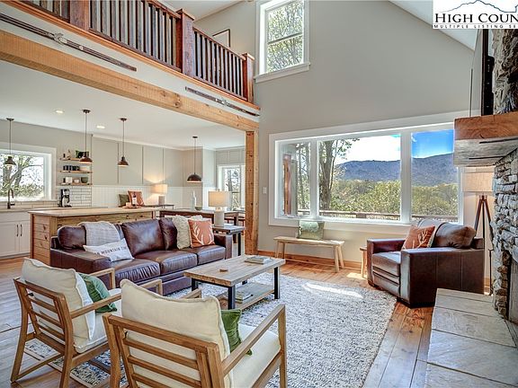 Amazing Grandfather Mountain views with three lots for privacy on Seven Devils. Newly renovated in 2023, south-facing, and fully furnished, this mountain home offers 3BD/3BA plus a queen/bunk room on the lower level. Short-term rentals are permitted and it comfortably sleeps 12. Renovations include a completely new kitchen with granite counters, a large island, and huge windows on the main level to take in the view and let in light. Wood floors, new carpet in the guest bedroom and loft, and new paint throughout. Main level: large kitchen, dining area and living room with vaulted ceilings and a stone wood-burning fireplace, two generously-sized guest bedrooms and a full bath in the hall. Large wrap-around deck with fire table, grill, and dining space. Upstairs has a primary king bedroom with en-suite bath and custom tiled walk-in shower plus a large loft area for more living or sleeping space. Lower level has new cedar paneling, a large game room with ping pong and pool table, a deck with a new hot tub, a second living room with flat-screen TV, and a queen/bunk room that sleeps 6. Flat driveway for four vehicles. Seven Devils is a vibrant mountain-top town with a community gym, parks, tennis/pickleball courts, Otter Falls and other trails, social events, and zip-lining/snow-tubing at Hawks Nest. Parcels are lots 50, 51, and 52; the house sits on lots 50 and 51 so lot 52 is an extra sellable lot. Come experience the cool mountain breezes and Grandfather views at 3800’ in Seven Devils!