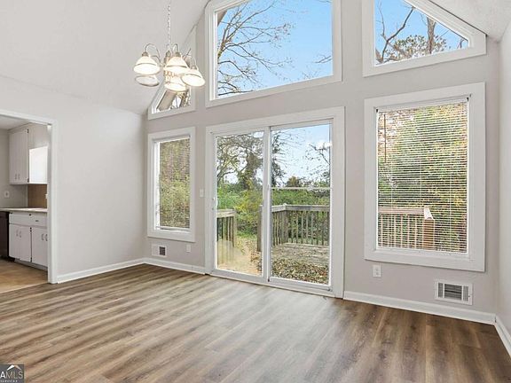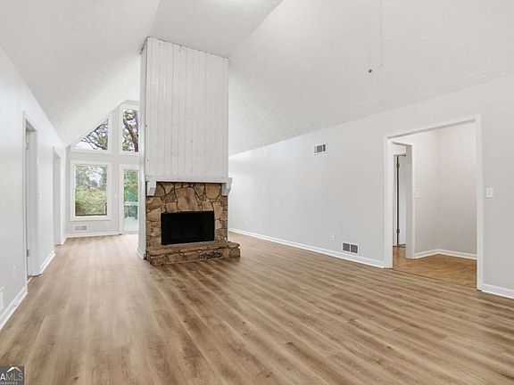 Welcome home to this charming ranch in the established Trickum Hills community of Woodstock. This light-filled residence offers comfortable one-level living with a spacious great room featuring soaring ceilings and a stone fireplace as the centerpiece. A separate dining room provides generous space for gatherings, while the bright kitchen includes stained cabinetry, gas range, dishwasher, refrigerator, and a view to the backyard-making everyday living easy and functional. The home features a split bedroom layout with the primary suite privately positioned away from the secondary bedrooms. Enjoy outdoor living on the large rear deck overlooking a level, usable backyard with plenty of room for gardening, play, or future enhancements. Freshly painted and move-in ready, this home offers excellent value. This home has easy access to Highway 92, shopping, schools, parks, and dining. Located in a highly rated school district, including Little River ES, Mill Creek MS, and Woodstock HS, this home combines comfort, convenience, and location.