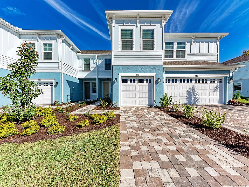 Welcome home to the Caladesi. With 1,853 square feet over two stories, the Caladesi is the ultimate relaxation destination. This modern townhome features three bedrooms, two-and-a-half bathrooms, and a great room. Immediately inside, you're greeted by a powder room for guests, and a one-car garage for ready-to-go access to the beaches, minutes away. The foyer opens up into an oversized great room, creating a functional space that allows you to flow from kitchen to great room to outside. A kitchen lines one wall with tons of counter space. Sliding glass doors near the cafe open out to the lanai and blue Sarasota skies. You'll love quiet mornings spent in the yard sipping coffee. The second story houses all the bedrooms, and when you reach the top of the staircase, you enter a long hallway. An owner's suite is a huge highlight with spacious walk-in closets to store all your clothing, accessories, luggage, and more. The peaceful owner's bath offers privacy with a walk-in shower, linen closet, and dual vanities. Another door opens to a walk-in laundry room; you'll love having all your laundry upstairs and easy to access. You'll never again have to walk downstairs with a heavy basket! Walking farther down the plush carpeted hallway, there is a second and third bedroom. Turn these into side-by-side rooms or utilize one bedroom as an office or guest room. Both bedrooms have beautiful large windows for cascading sunshine, and you will love the view. A second bath sets at the end of the hallway for more privacy.