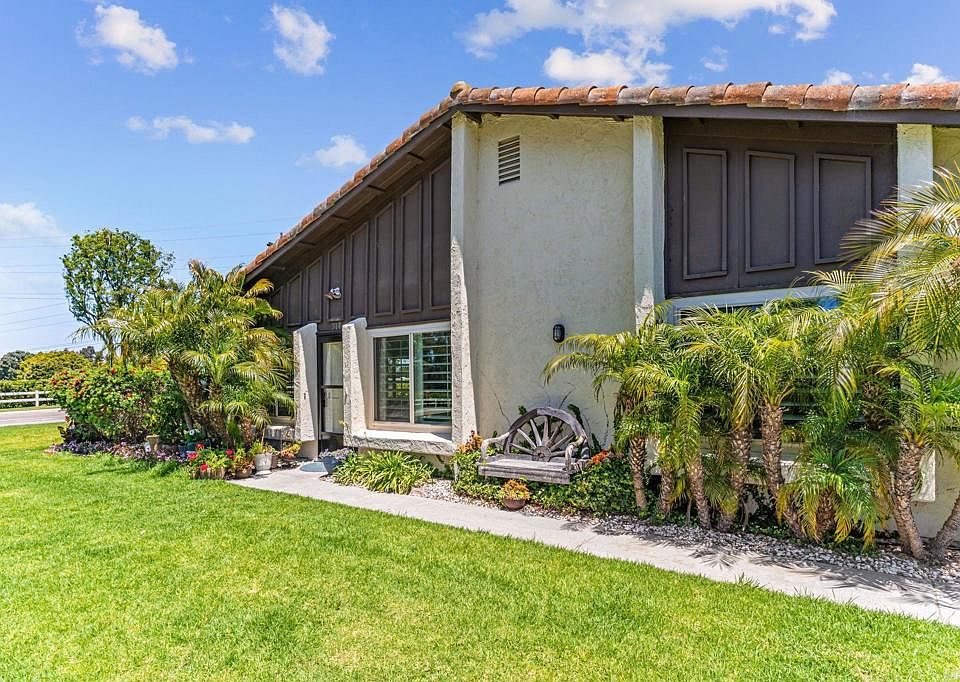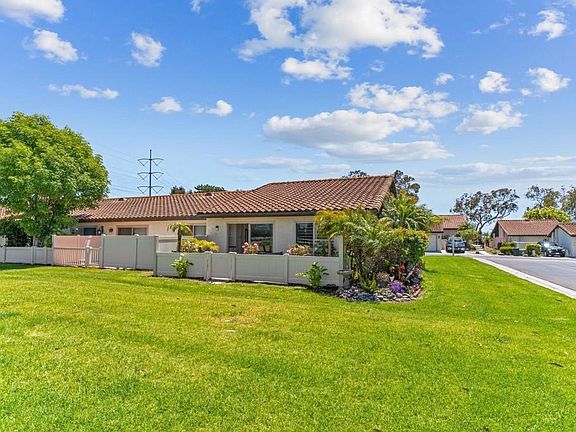 Single story, turnkey end-unit home in the highly desirable community of High Country Villas. Completely remodeled light and bright home with two large patios. Largest model in the community with 2 bedrooms plus 3rd optional bedroom/den and 2 full bathrooms. This remodeled home has had the kitchen opened up so it now opens to the living spaces, has newer appliances, granite countertops, pantry with pull outs, and a bar off the kitchen. All new windows and interior doors throughout, plantation shutters and heating and air conditioning installed. Primary bedroom with ensuite bathroom that features granite countertops, newly installed glass shower doors, jetted tub, vanity and walk-in closet. Secondary bedroom with a built-in Murphy bed and walk-in closet. Two patios, one off the primary bedroom with multiple fruit trees and the other off the living spaces that opens to the greenbelt. One detached garage and one dedicated parking spot plus visitor parking. Additional upgrades include: all new California closets in both bedrooms, stamped concrete front and back patios, an epoxied garage floor, and garage cabinets installed. Water paid by the HOA. This sought after neighborhood is a 55+ senior community with 2 community pools and spas, pickle ball court, a well-appointed clubhouse, a 9-hole golf course and an array of community activities such as bocce ball, shuffleboard, horseshoes, yoga, bridge, happy hour, movie nights and so much more. Great hiking trails next door at the Manchester Preserve. Enjoy near perfect climate, close proximity to restaurants and shopping and just 10 minutes to beautiful coastal beaches. **Current 3rd bedroom is being used as a den with no doors