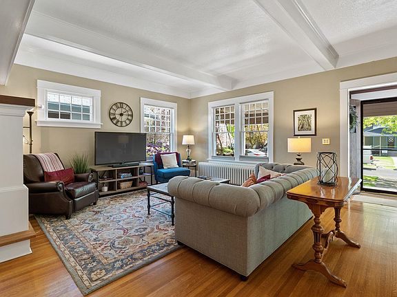 Nestled on a picturesque, tree-lined street just two blocks from Manito Park, this exquisite Craftsman home is a true gem. The beautifully updated residence boasts five spacious bedrooms and three modern bathrooms, all adorned with elegant wood floors. The main floor features a generous living and dining area, highlighted by a lovely fireplace, a sunroom, and a convenient laundry room. The chef's kitchen is a culinary delight, showcasing honed soapstone countertops and beautiful slate flooring. Ascend to the upper floor, where the primary bedroom offers a walk-in closet, accompanied by a second bedroom and a bathroom with heated floors. Enjoy the comfort of radiant heating throughout, powered by a new high-efficiency boiler and mini splits for A/C. Adding to the allure is a full walkout basement, providing extra space for various needs. The charming backyard is perfect for entertaining guests or simply enjoying a peaceful retreat.