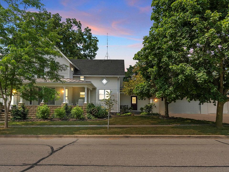 Welcome to a timeless treasure in the heart of Angola, IN. This exquisite 4-bedroom, 2.5-bathroom historical home offers a perfect blend of old-world charm and modern amenities. As you approach, the inviting front porch, straight out of a magazine, sets the stage for the beauty within. Step inside to be greeted by a grand foyer showcasing 10' ceilings and ornate finishes. The pride of ownership is evident in every detail, from the virgin white oak trim and hardwood floors to the grand front staircase and stunning Tiffany fixtures. The home boasts multiple built-ins, exposed brick, and beautiful stained glass, creating a warm and elegant atmosphere. The sitting room flows seamlessly into the great room, where a cozy fireplace invites you to relax. The formal dining room leads to a light-filled kitchen and nook, complete with custom hickory cabinets, a built-in wine rack, stainless steel appliances, a breakfast bar, and a dine-in nook. The finished breezeway, which connects to the garage, includes a laundry room and a half bath. An additional den on the main floor serves as a perfect office space. Ascend the back staircase to discover four generously sized bedrooms, one of which features a vanity, ideal for a dressing room. The updated full bathrooms offer tiled showers for a modern touch. The 3-car garage provides ample space for vehicles and a workshop. Outside, your private oasis awaits. The front porch offers shade from mature trees, while the backyard is a haven with a fenced yard, sparkling saltwater pool with a new liner and cover, and a built-in natural gas grill. The expansive lawn, deck, and built-in speakers make it the perfect spot for summer gatherings. Additional updates include a new water heater, furnace, AC, electrical panel, and sump pump. Located in the heart of Angola, this home is within walking distance to downtown shops and dining, Trine University, and Cameron Hospital. Enjoy quick access to the interstate and the many amenities of Steuben County, including Pokagon State Park and 101 lakes. This extraordinary home is a rare find, ready for you to call it your own!