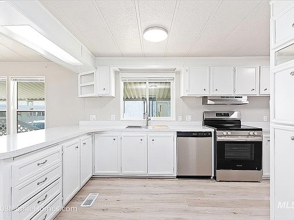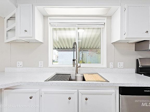 **OWNER WILL FINANCE @ 2.9% with 50% down. PLUS, 6 months FREE lot rent with an accepted offer by July 29. Additional Loan options from $5k down. Interest Rates vary from 2.9-12% depending on the down payment. Ask about how you can pay off home in 7 YEARS!! Loans can be Funded within 2 Weeks. This manufactured home in Meridian has been significantly updated, including a New Roof, New Exterior/Interior Paint, New Floors, New Kitchen Countertops, NEW MASTER BATH!! Plus it includes an 8x16 shed/shop with power. You'll appreciate the fenced-in yard AND places to park up to 3 cars, which is rare in a Mobile Home Park. This sale is for the home only. The lot rent is $550/mo, which includes Water and Trash.