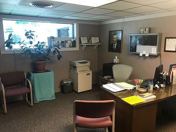 A great opportunity to invest in Mangum! This beautiful two story home is located a short walk from downtown, library, football field, and rodeo arena. Downstairs is currently used as a doctors office with a waiting room with adjoining check-in station, office, two exam rooms, x-ray room, kitchen, utility, half bath and large exercise room. The downstairs could easily be converted into three or four bedrooms and a full bath. The upstairs features three bedrooms, two full baths, kitchen, and two living areas. Off of the back of the house is an immaculate balcony, made out of Trex weatherproof composite wood, that overlooks a well kept yard, pecan and fruit trees, and the football field. Two 10' x 16' storage buildings sit in the backyard, one with electric available. Home has been well kept and updated accordingly within the past 5 years which include new electric, c h/a, paint, insulation, windows, and more. Appliances and furnishings to stay with home with an acceptable offer.