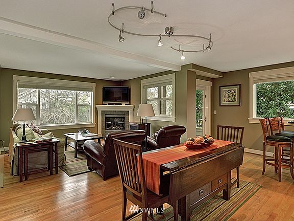 Come & enjoy this light, bright & open townhome w/convenient location & high walking score! The great-room features gracious liv. rm w/gas frpl, gleaming hdwd flrs, formal din. rm & gorgeous kit w/granite counters, gas range, plus ample prep & cupboard space. Master bdrm is large & comfortable w/3 double closets & ensuite bath. Tired of seeing all those tall, narrow town houses? You will enjoy the wide & generous spaces in this home. No H.O. Dues, A/C, decks, garage & peek-a-boo lake views too!