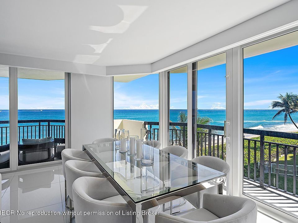 Experience the epitome of coastal luxury living in this meticulously renovated oceanfront condominium. Every detail thoughtfully curated to provide comfort and sophistication in the 3-bedroom, 3 bathroom, 2,695 square foot unit. Boasting a southeast exposure with wraparound balcony, 403S offers breathtaking ocean views from every room, as well as partial intracoastal views to enjoy the spectacular South Florida sunsets. The open floor plan enhances the panoramic vistas, creating an unparalleled blend of indoor and outdoor living. No expense was spared in this complete gut renovation ensuring modern luxury and design throughout. The unit is being offered fully furnished, allowing for a seamless transition to your new South Florida home.