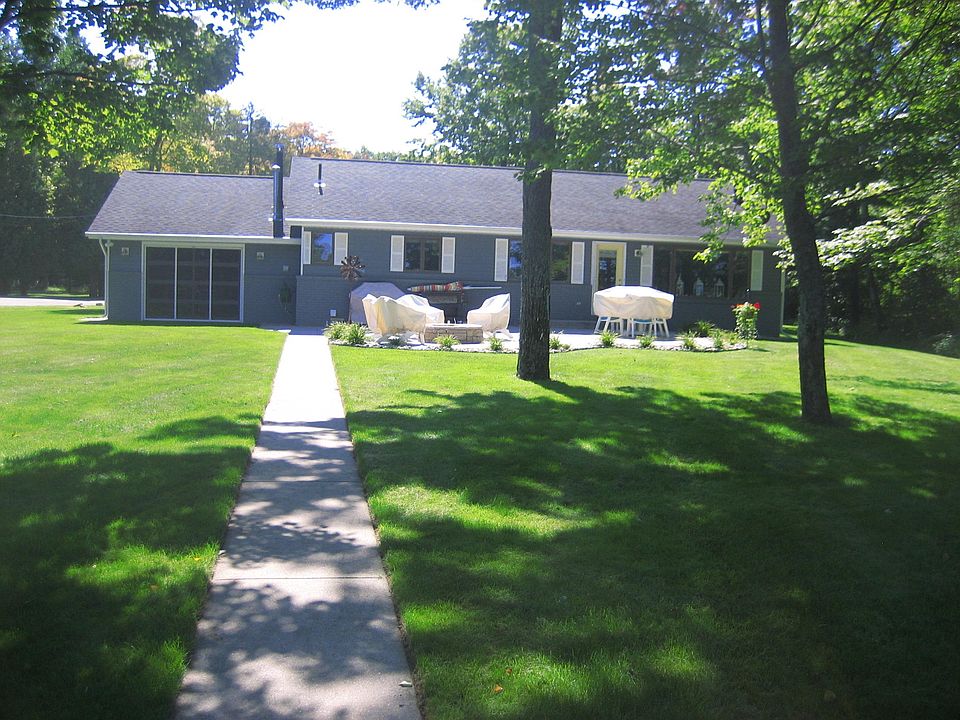 A Gorgeous 3 bedroom home with 105 ft of frontage on spectacular West Twin Lake. The attached garage was turned into a beautiful recreation room with a bar and wood burning stove. The whole home has been upgraded and tastefully decorated. Granite counter top in the kitchen, new cabinets. 3/4'' hardwood floors and Anderson windows. A newer boiler for the hot water baseboard heat. It has a detached garage for all your water toys.