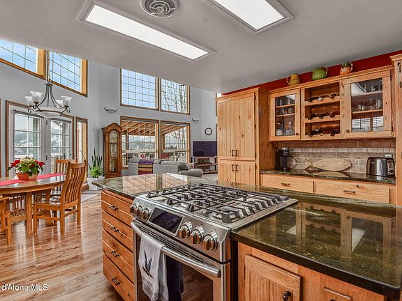 Welcome to your ideal North Idaho retreat! Nestled on nearly 15 acres of rolling landscape, this custom-built 3-bedroom, 3-bath octagon home offers over 3,200 sq ft of versatile living space designed to fit your lifestyle. Whether you're seeking the freedom of homesteading or a layout perfect for multi-generational living, this property has it all. Inside, the home features two full kitchens—including a walkout basement kitchen ideal for canning, hosting extended family, or creating a private living space. The main floor primary bedroom includes a walk-in closet and attached luxury bathroom, while the second-floor suite doubles beautifully as a private master or a family room/den—giving you options for every season of life. Every room showcases breathtaking panoramic views of Cave Lake, Swan Lake, the Trails of Coeur d'Alene, and the surrounding mountains, with Medicine Lake peeking in the distance. The land is equally impressive: a fenced and cross-fenced hay pasture (supporting up to five horses seasonally), multiple livestock stalls, a large garden with raised beds, and even a rose gardenall ready for a self-sufficient lifestyle. A 40' x 42' shop with 14' and 12' lean-tos, RV door, and loft provides abundant storage and workspace. Upgrades include granite countertops, Karndean LooseLay flooring, high-efficiency heat pump, multiple heating sources, and A/C for year-round comfort. With no CCRs, you'll enjoy the freedom to live your North Idaho dream your way. A paved driveway, updated deck, and nearby highway access balance convenience with privacy, while nearby public launches even allow boat access from Cataldo to Cave Lake. Whether you envision a thriving homestead, hobby farm, or a place for generations to gather, this property offers unmatched versatility and natural beauty.