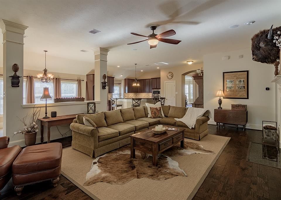 This corner lot, 3 car garage, open floor plan home is beautiful inside and out! With a large driveway, huge back patio and professionally landscaped yard, this home offers complete privacy. The floor plan is one of a kind. Wide entryway welcomes you to a formal sitting and dining room with secluded mother in law suite/guest room/study/craft room with access to private bathroom, laundry room and garage access. The living room opens to the kitchen, breakfast room and study/game room. Off of living from the game room/study are 2 secondary bedrooms and a bathroom. You won't believe the Master suite!! Split from secondary bedrooms, the Master bedroom has it all. Plenty of room for your largest bedroom set, huge sitting room, perfect for a nursery or study and gorgeous bath and master closet. Tons of storage and cabinets throughout and a finished out, oversized, 3 car garage that will blow you away! Don't miss out on this touring this perfect floor plan and beautifully maintained home.
