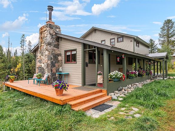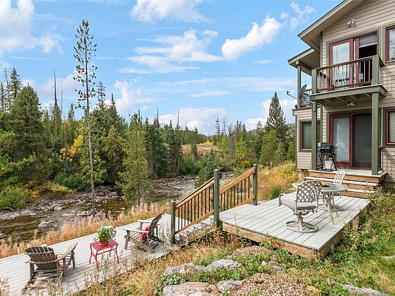 Riviera on the Elk is a rare riverfront property offering natural beauty, privacy, and direct access to world-class outdoor recreation—just miles from skiing in Steamboat Springs. This 1.71-acre gem has the Upper Elk River running through it with thousands of acres of National Forest at the back fence—a highly sought-after combination and rarely dupilicated. A lovely home sits at the river’s edge and welcomes you with a classic covered porch featuring oak flooring, flower boxes, and hummingbirds—perfect for the rocking-chair surveillance of the property! The original portion of the home was built with a cozy country kitchen, living and dining areas with river views, a custom rock fireplace, one bedroom, a full bath and a laundry/utility room. In 2002, the home was expanded to include a spacious great room with hardwood flooring, entran heating, a second rock fireplace, wood beam ceilings, LED lighting, and a wall of windows to take in the incredible views, with a door out to an east-facing deck. There’s also a handy butler’s pantry with standard appliances and a whimsical quarter bath on this level.