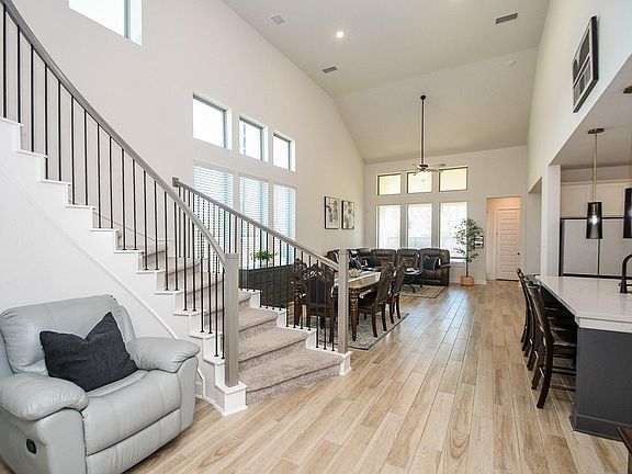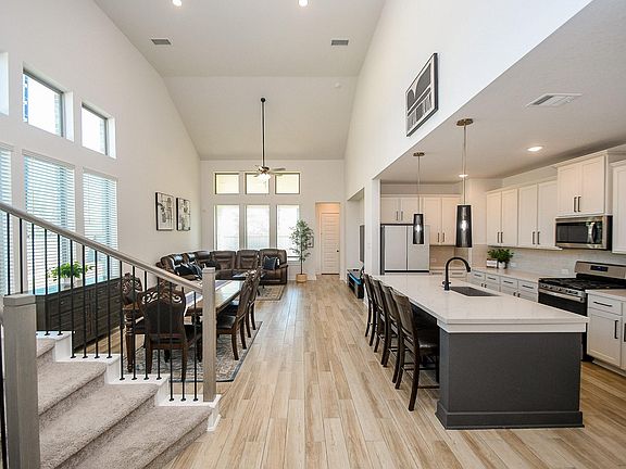The home is MOVE IN READY and fully furnished. This beautifully designed home features a spacious open-concept layout with high ceilings and large windows that fill the interior with natural light. The kitchen includes modern cabinetry, a sizable island, and premium finishes. The home offers generously sized bedrooms, well-appointed bathrooms, and a comfortable primary suite with ample closet space. Additional features include a covered outdoor area, landscaped yard, and an attached garage. The property is located in a thoughtfully planned community with attractive streetscapes and nearby green spaces.