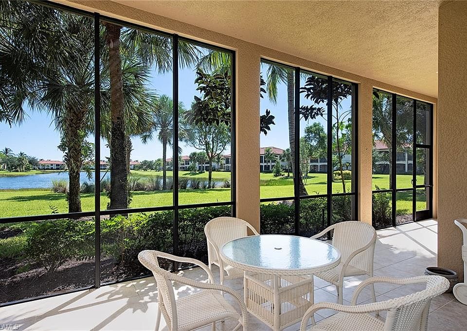 Great property with a long lake view. Bright and light with white Italian cabinetry. GE appliances and beautiful white Corian counters. Ten-foot ceilings with eight-foot doors throughout. Superior, Gulf Bay Construction in luxury condominium living. Expansive screened lanai is one of the largest in Fiddler's Creek. Impact glass storm doors and windows. Wonderful floor-to-ceiling lanai doors in the master bedroom. Double walk-in closets and spacious master bath. This elegant condominium is offered partially furnished with membership to one of the most desirable club and spa facilities in Naples. Enjoy pickleball, tennis, an active social atmosphere and much more. Minutes from the shops, beaches and lifestyle of Old Naples and Marco Island, Fiddler's Creek is a vibrant, desirable, country club-style community. Growing and fast-paced with the best of all that is Southwest Florida just minutes away.