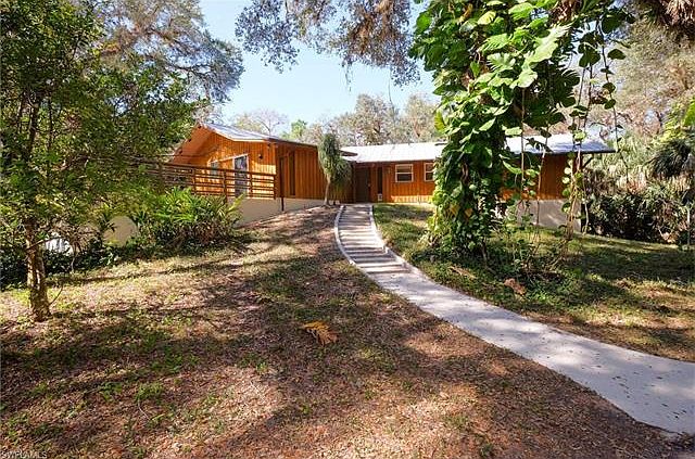 Secluded, horse-friendly Alva estate on six acres. Four bedroom three bath 3,858 square foot home nestled on six acres with large majestic oaks, lush vegetation and a meandering creek. Two level home with guest rooms and family room on the lower level and master suite on the main level. Living room has floor-to-ceiling windows, cathedral beamed wood ceilings and stone fireplace. Kitchen includes Corian countertops, double oven, propane stove, walk-in pantry, and spiral service stairs. Serene, natural views are provided from the living room, formal dining area, concrete patio, and an upper level deck off the living area. Four air conditioning units provide efficient, economical cooling. Backup propane generator with auto-start and auto maintenance features. New paint and carpeting.