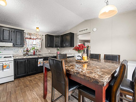 Step into this cozy 3-bedroom, 2-bathroom mobile home with a warm, welcoming vibe and modern touches throughout. The kitchen and living room have been refreshed with contemporary finishes, and the open layout makes the space feel inviting. A stylish mini bar area in the living room creates the perfect setup for entertaining guests. The primary suite features sliding barn doors leading into the attached bathroom, adding both charm and character. This home comes fully equipped with a gas range, range hood, black refrigerator, dishwasher, and washer and dryer—making it truly move-in ready. Enjoy the large fenced in yard and shed that stays for extra storage. Conveniently located near shopping, grocery stores, and quick access to the I-70 Business Loop, this home offers comfort and accessibility. Lot rent includes water, sewer and trash. Schedule your showing today!