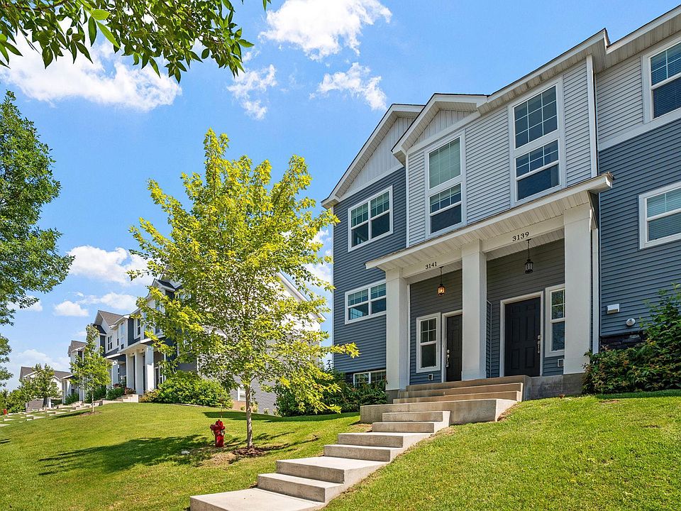 Welcome home! Here is your opportunity to own a newer construction, move-in ready home in Chaska! Amazing end unit with oversized/private deck. This stunning property features over 1,600 finished square feet with 3 bedrooms + an office/non-conforming 4th bedroom and 3 bathrooms. Updated and seriously better than new with tons of natural light. 3141 Clover Ridge Drive is a 2022 build, complete with updated kitchen, quartz countertops, SS appliances, LVP floors & so much more. Neutral paint throughout, the main level has incredible tall ceilings, thoughtful spaces, oversized living room with gas fireplace and powder room. This home has been meticulously maintained & lives more like a single family home. The upper level is complete with 2 beds + an office or 3 rooms on one level, 2 baths, one of which is a private primary + walk-in closet, and washer/dryer. The finished lower level is complete with your 4th room and garage access. Finished with an attached 2 car with additional storage. Sought after neighborhood close restaurants/shopping/parks/trails/transit & more!