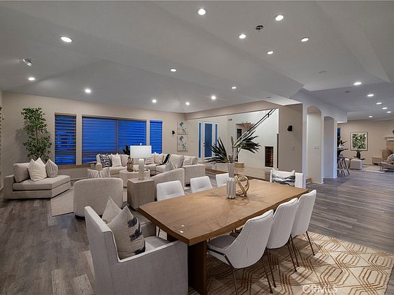 From the moment you enter, you're greeted by soaring cathedral ceilings and an expansive open floor plan that floods the space with natural light. The layout is designed with intention: all bedrooms are upstairs, creating a spacious, uninterrupted main floor for gathering, entertaining, and everyday luxury. The kitchen and interior bar transition seamlessly to the resort-style backyard, where a sparkling pool, custom cabana, and outdoor lounge invite relaxation, celebration, and infinite possibilities.