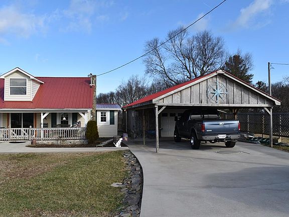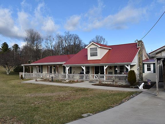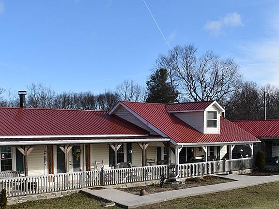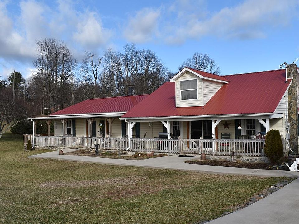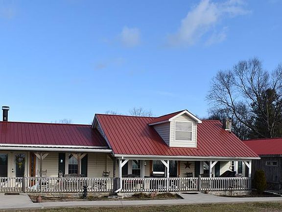 This home combines the charm of a completely remodeled 1950s farm house with the modern upgrades of an addition built in 2003. The living room features a large stone fireplace with gas logs (but it can also be used to burn wood), hemlock flooring, ceiling fans, cathedral ceiling and plenty of windows and doors to bring in the beautiful view in front of the home. An exceptionally large master suite has a gas fireplace, hemlock floors, patio doors that open onto the deck, a big closet and lots of space for relaxing. The dining room has a corner gas log fireplace and built-in shelves. There is a den off the dining room, which could be used as a 4th bedroom. It opens into the 2nd full bathroom with laundry area. The loft area has a huge bedroom with a half bath and a gorgeous view out the front window. There is another nice bedroom on the main floor with patio doors out to the deck. The detached garage has heat and air conditioning plus a 22 x 26 shelter for up to 4 vehicles.