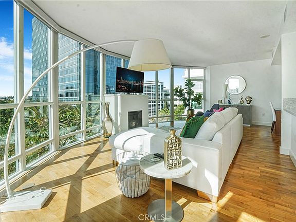 Modern Elegance - Discover the epitome of luxury living in this alluring residence nestled in one of Orange County's most prestigious high-rises, Marquee Park Place. Located on the 5th floor, this unit has undergone beautiful upgrades including a sleek modern flushed quartz countertop & backsplash effortlessly blending an open-concept layout with modern sophistication inviting comfort. Panoramic views throughout massive curved windows and a floating white quartz fireplace view of abundant city lights, sunsets and manicured gardens below lend a beautiful backdrop to this serene one story residence when entertaining guests or enjoying the evening view. Featuring a versatile and innovative custom-designed Murphy bed that seamlessly transforms into a functional desk. This dual-purpose furniture piece is ideal for maximizing utility without sacrificing style. Embellish luxury high-rise living in a rare highly desirable end unit offering a circular floor-plan boasting two bedrooms, two baths, balcony, open gourmet kitchen with European styled cabinetry, reimagined quartz breakfast bar, elegant wine cooler, stainless steel appliances, brand-new refrigerator, solid hardwood floors and in-unit washer/dryer. Situated in a 24-hour guard-gated community with concierge service, residents have access to top-notch amenities, including a pool, spa, gym, billiards room, and lounge. Perfectly positioned, just minutes from Fashion Island, South Coast Plaza, and a host of fine dining options at Park Place. In- addition this location offers unbeatable freeway access. The HOA covers water, trash, gas, and internet, with no Mello Roos fees. This is luxury redefined—schedule your tour today!