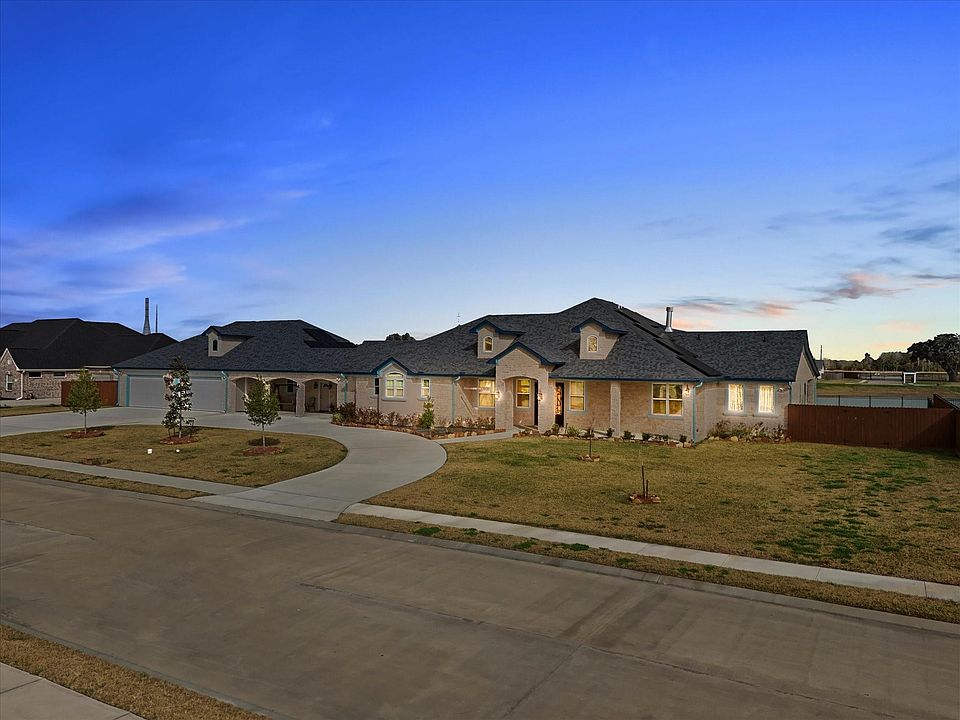 Step into unparalleled luxury with this custom oversized one-story estate, nestled in the heart of the exclusive gated community. From the moment you arrive, the grand circle driveway and majestic stone façade make an unforgettable impression. Inside, be swept away by open-concept living with soaring ceilings, crown molding, and an effortless flow between spaces. The gourmet chef’s kitchen is a showstopper, featuring exquisite quartz countertops, a detailed backsplash, and abundant cabinetry. The luxury mother-in-law suite offers all the high-end finishes found throughout the home. The primary suite is a serene retreat, boasting panoramic views of your private oasis, a lavish en suite with rich tile, a soaking tub, and an oversized shower. Enjoy indoor-outdoor living at its finest with a sprawling backyard, outdoor kitchen, & oversized pool—perfect for entertaining. Solar panels complete the home’s eco-conscious design. This is a rare opportunity to own a truly extraordinary residence.