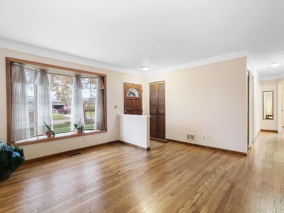Inviting Warren ranch offering 3 bedrooms and 1 full bathroom. This home features a spacious living room with a large bay window that brings in abundant natural light, along with hardwood floors that continue through the living room and bedrooms. The eat-in kitchen provides plenty of cabinet space, and an additional room off the kitchen offers great flexibility—perfect as a dining room, family room, or home office. The finished basement expands your living space with a bar area, ample storage, and a dedicated laundry room. Outside, enjoy a fenced backyard complete with a patio and a detached 2-car garage. A wonderful opportunity to own a well-kept home with versatile living spaces!