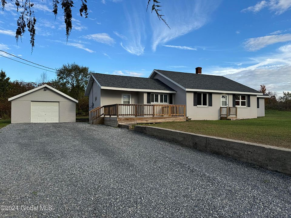 Enjoy simple country living at it's best with the comforts of this open concept completely renovated 3 bedroom, 2 bath ranch home with beautiful views and sunsets! This home features a large modern open kitchen with eat-in area, additional dining and living room with fireplace. Plenty of storage throughout. New windows, roof, water softener, heater, electric hot water tank, pex plumbing, new well, septic and gutters. One car garage with power. Block house with new framing for insulation, improved crawl space, removal and replacement of attic insulation. Mechanicals and laundry main floor. Stone wall along driveway, topsoil and grass seed on front lawn, new culvert and secondary driveway in place. Agricultural district. All power washed. Vacant, easy to show and move-in ready